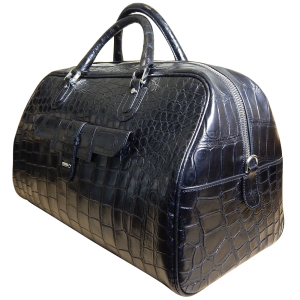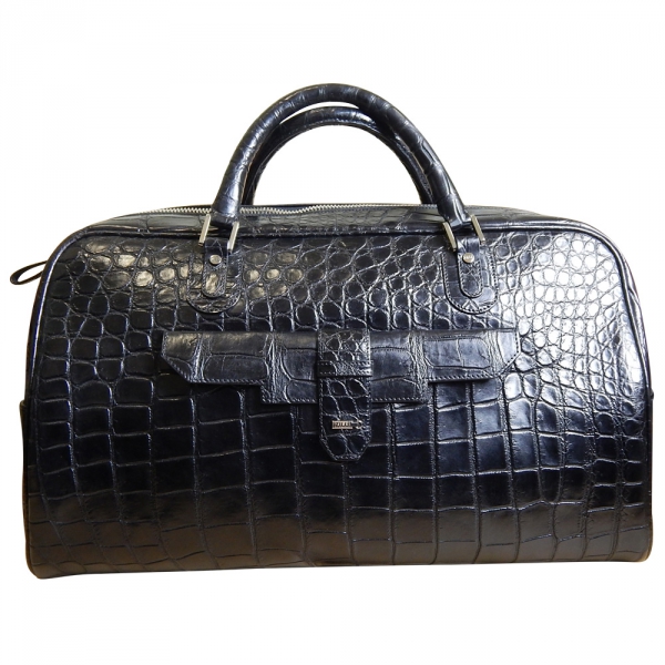 Дорожная сумка черного цвета, Zilli, кожа крокодила