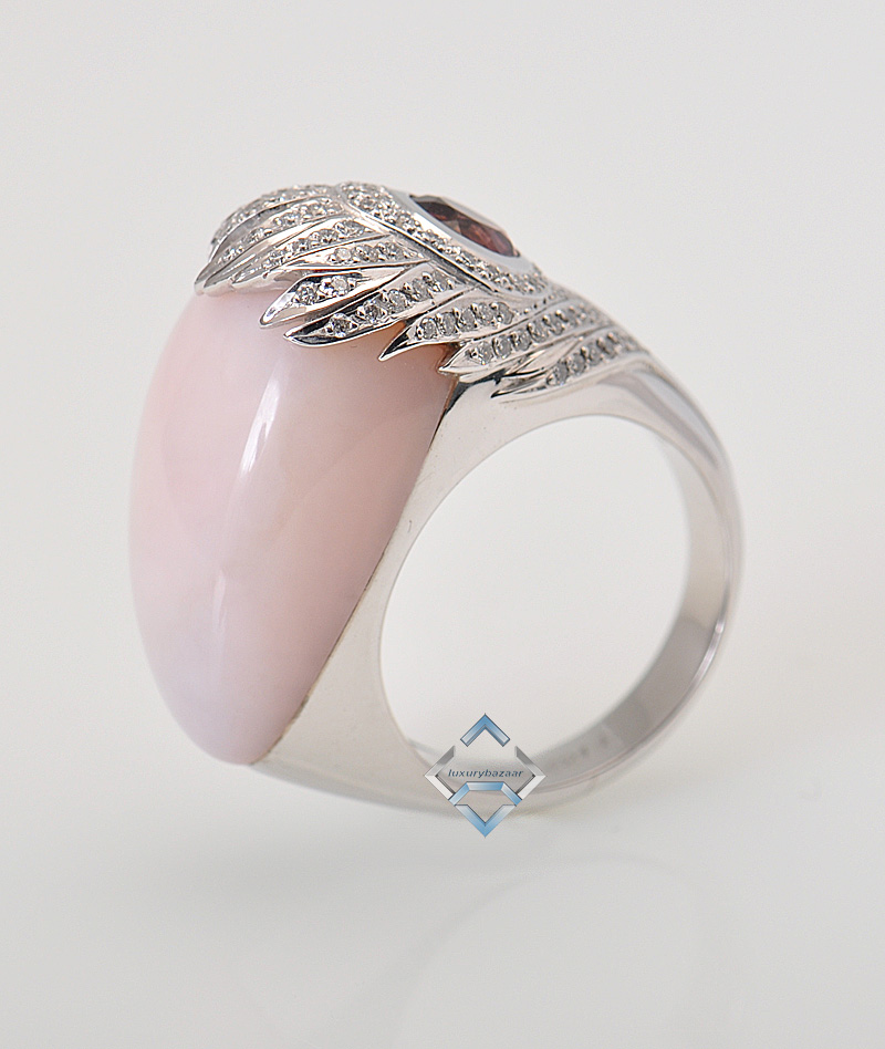 Carrera y Carrera 18K White Gold Diamond Pink Peacock Ring