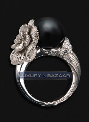 Carrera y Carrera Gardenia 18K White Gold Ring with Onyx and Diamonds