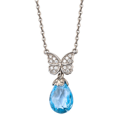 Подвеска из белого золота с голубым топазом и бриллиантами