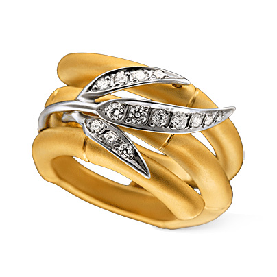 Кольцо Carrera y Carrera Bambu Maxi, желтое, белое золото, бриллианты