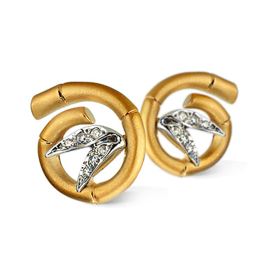 Серьги Carrera y Carrera Bambu Tao Mini, белое, желтое золото, бриллианты