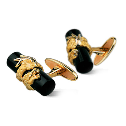 Запонки Carrera y Carrera Circulos de Fuego, желтое золото, оникс