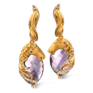 Серьги Carrera y Carrera Ecuestre Caballo, желтое золото, бриллианты, аметист
