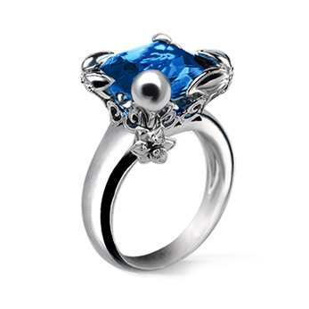 Описание Золото 18 карат, 8,34 г 1 голубой топаз, 5,75 карат Размеры (мм): 28,00 x 21,00 x 13,00