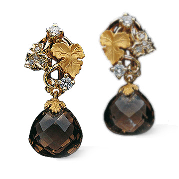 Серьги из желтого золота с дымчатым кварцем и бриллиантами