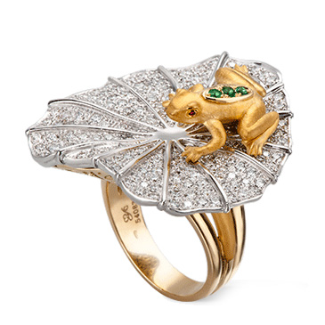 Кольцо из желтого и белого золота, рубинов, изумрудов и бриллиантов