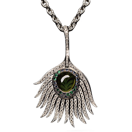 Подвеска Carrera y Carrera Peacock, белое золото, бриллианты, драг. камни