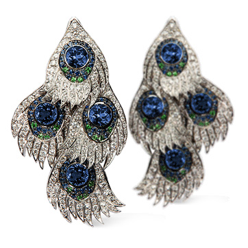 Серьги Carrera y Carrera Peacock, белое золото, бриллианты, драг. камни