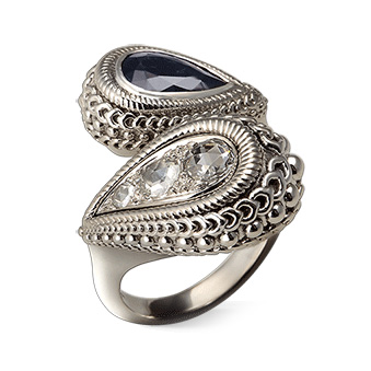 Кольцо из белого золота с голубым сапфиром и бриллиантами