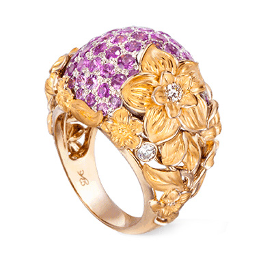 Кольцо из желтого и белого золота с розовыми сапфирами и бриллиантами