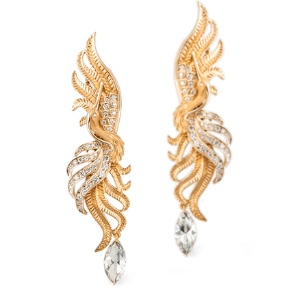 Серьги Carrera y Carrera Garzas, желтое золото, бриллианты, празиолит