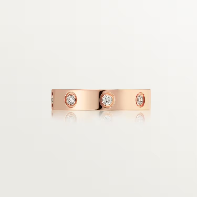 Описание Обручальное кольцо из розового золота 18 карат с 8 бриллиантами, ширина 4 мм.