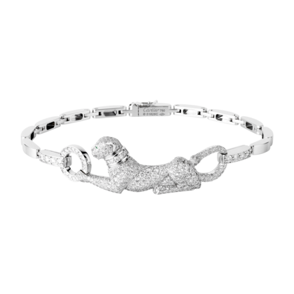 Описание Браслет из белого золота 18 карат с мотивом "пантера", бриллианты, изумруды (глаза) Размер: 17,5 см "