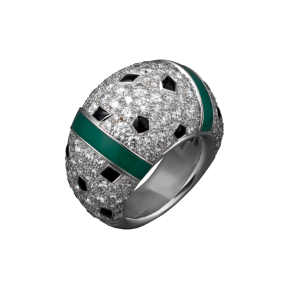 Описание Кольцо Panth?re de Cartier, Белое золото 18 карат, 174 бриллианта классической огранки общим весом 5,55 карата, хризопразы, оникс