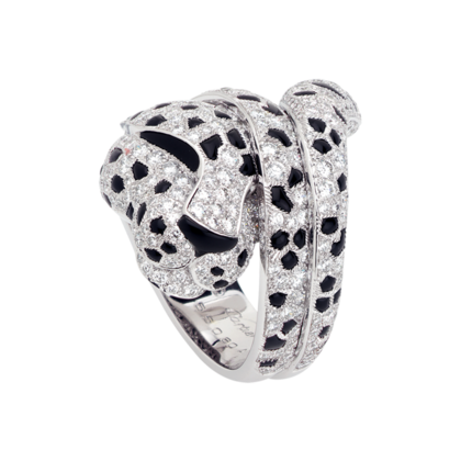 Описание Кольцо из платины 950 проба, бриллианты, оникс (глаза, нос, пятна)