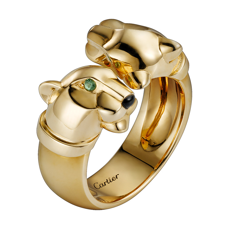 Описание Кольцо Panth?re de Cartier, желтое золото 18 карат, гранаты-цавориты, оникс