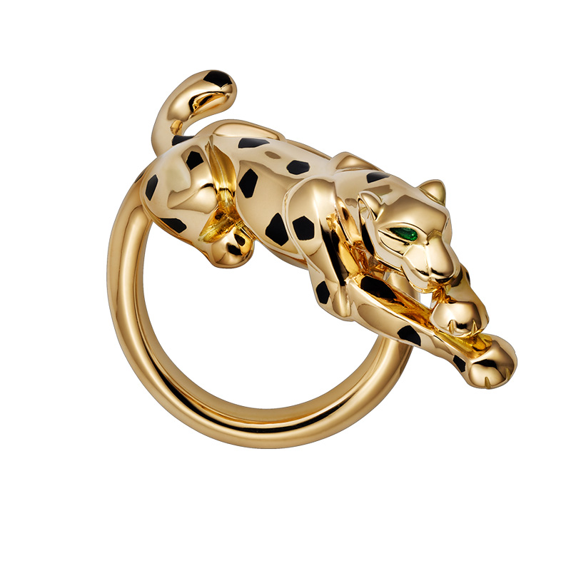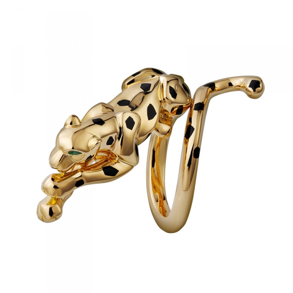 Описание Кольцо Panth?re de Cartier, желтое золото 18 карат, черный лак, гранаты-цаворите