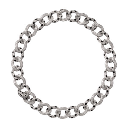 Описание Panth?re de Cartier колье - Белое золото 18 карат, 1593 бриллиант классической огранки общим весом 20,98 карата, изумруды, оникс