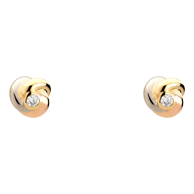 Описание Серьги из золота трех цветов 18 карат с 2 бриллиантами, для проколотых ушей