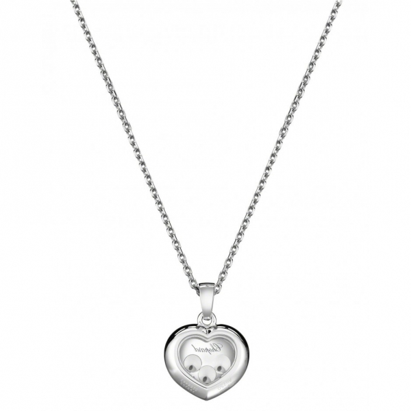 Подвеска Chopard Happy Diamonds Icons ref: 799203-1003 из белого золота 750 пробы с бриллиантами (0,28 карат), плавающие бриллианты свободно скользят между двумя сапфировыми стеклами.