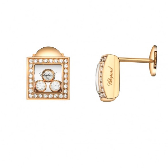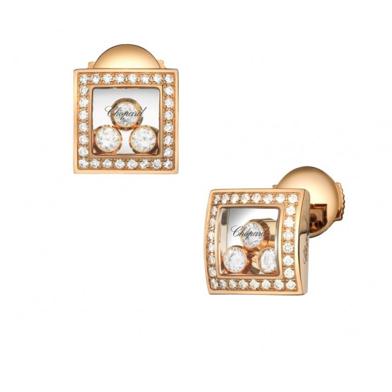 Серьги Chopard Happy Diamonds Icons ref: 839224-5002 из розового золота 750 пробы с бриллиантами (0,32 карат), плавающие бриллианты свободно скользят между сапфировыми стеклами.