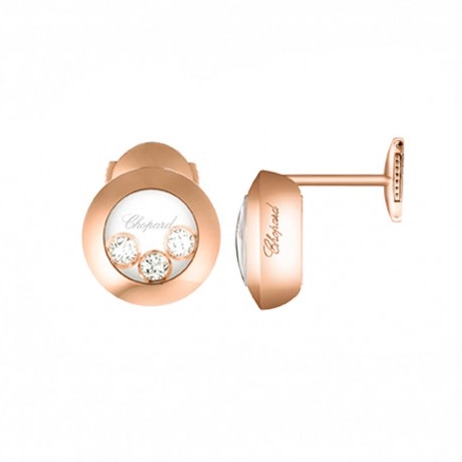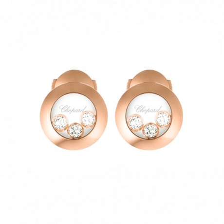 Серьги Chopard Happy Diamonds Icons ref: 839562-5001 из розового золота 750 пробы с бриллиантами (0,16 карат), плавающие бриллианты свободно скользят между сапфировыми стеклами.
