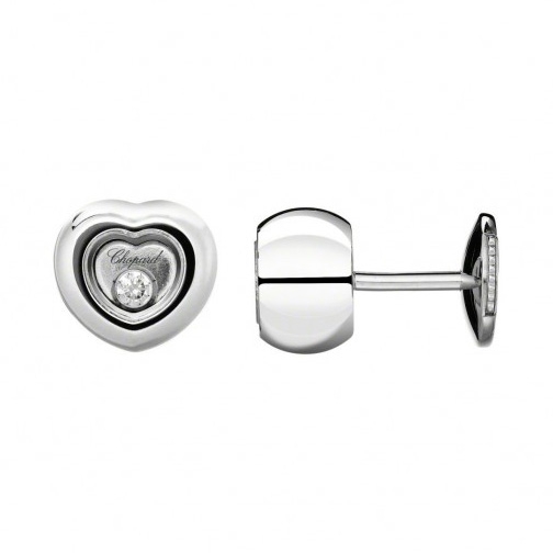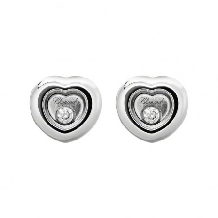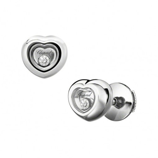 Серьги Chopard Miss Happy ref: 839006-1001 из белого золота 750 пробы с бриллиантами (0,06 карат), плавающие бриллианты свободно скользят между сапфировыми стеклами.