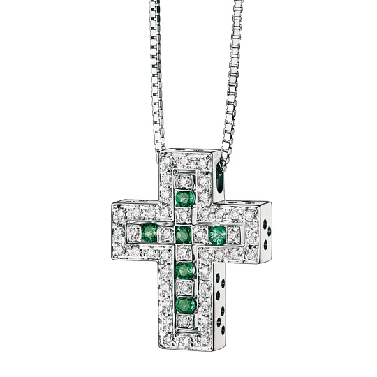 Кулон-крестик Damiani Belle Epoque ref: 20039530 из белого золота с бриллиантами (ct 0.28) и изумрудами (ct 0.25).