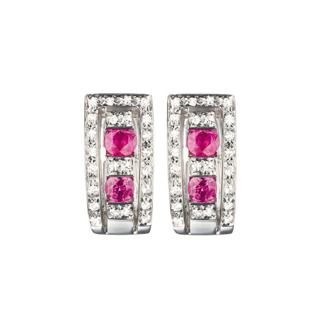 Описание Серьги из белого золота с бриллиантами (ct 025) и рубинами (ct 080)