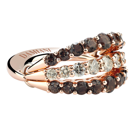 Кольцо Damiani Gaia Fancy ref: 20046490 из розового золота с коричневыми бриллиантами (кт 0,82) и дымчатым кварцем.