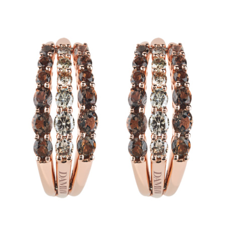 Серьги Damiani Gaia Fancy ref: 20046592 из розового золота с коричневыми бриллиантами (кт 0,53) и дымчатым кварцем.