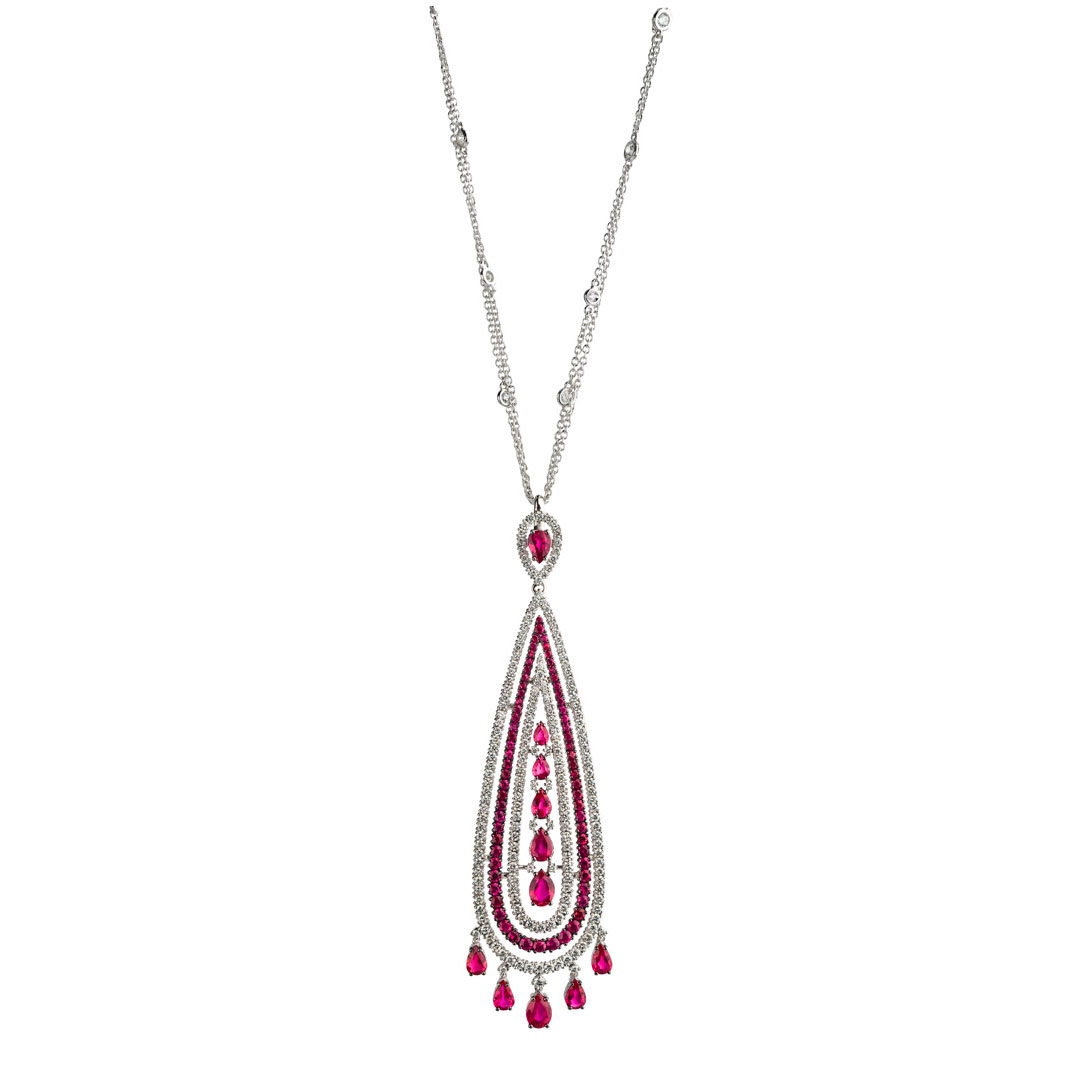 Описание колье Damiani Masterpieces Regina Cleopatra из белого золота с бриллиантами (ct 4,50) и рубинами (ct 8,22)