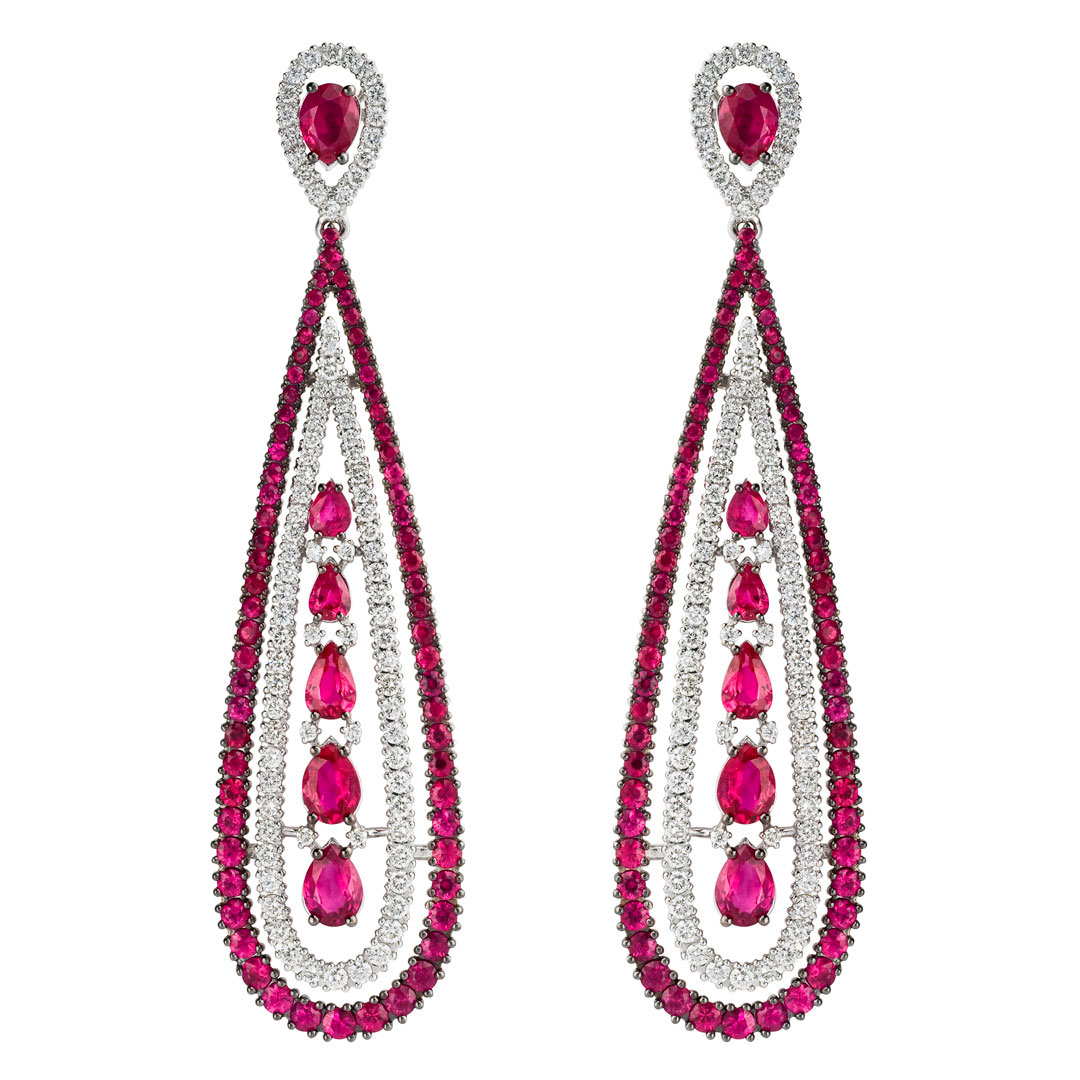 Описание Серьги из белого золота с бриллиантами (ct 2,80) и рубинами (ct 10,40)