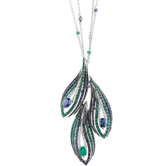 Колье Damiani Mini Peacock белое золото, бриллианты, изумруды, сапфиры (20042470)