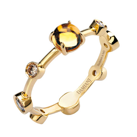 Кольцо Damiani Moon Drops ref: 20040722 из желтого золота с коричневыми бриллиантами (ct 0.32) и желтым топазом.