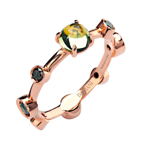 Кольцо Damiani Moon Drops ref: 20040723 из розового золота с черными бриллиантами (ct 0.32) и перидотом.