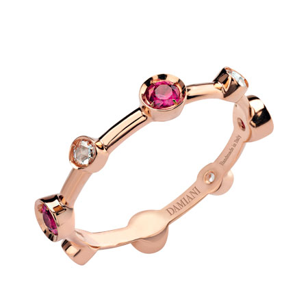 Кольцо Damiani Moon Drops ref: 20040731 из розового золота с бриллиантами (ct 0.12) и рубинами (ct 0.30).