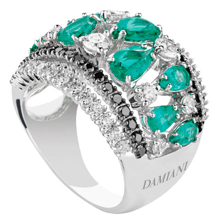 Кольцо Damiani Regina Cleopatra ref: 20046257 из белого золота с бриллиантами (ct 1.70) и изумрудами (ct 1.90).