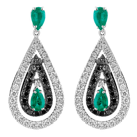 Описание Серьги из белого золота с белыми бриллиантами (ct 110), черными бриллиантами (ct 070) и изумрудами.