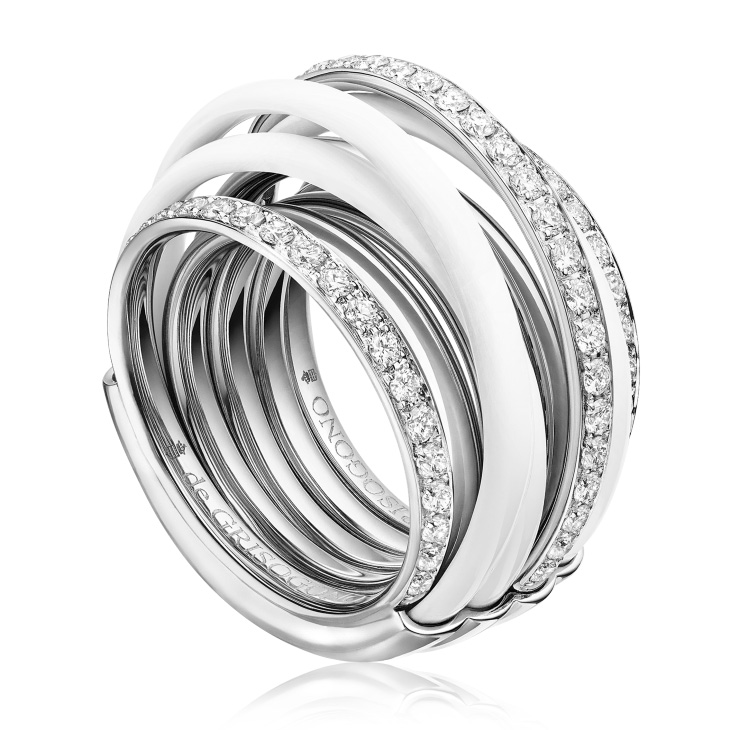Кольцо de Grisogono, коллекция Allegra. Кольцо из белого золота и белой керамики с белыми бриллиантами.