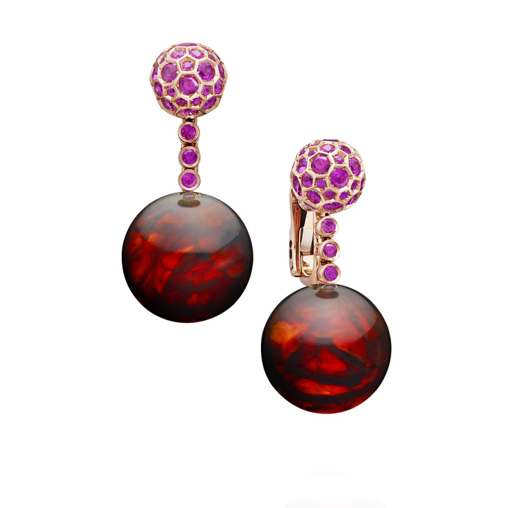Серьги de Grisogono, коллекция Boule. Серьги из розового золота 750 пробы с розовыми сапфирами и янтарем.
