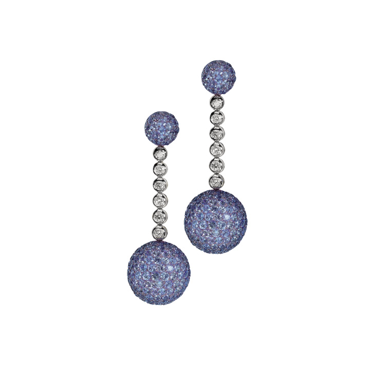 Описание Серьги de Grisogono Boule, Белое золото, бриллианты, аквамарины.