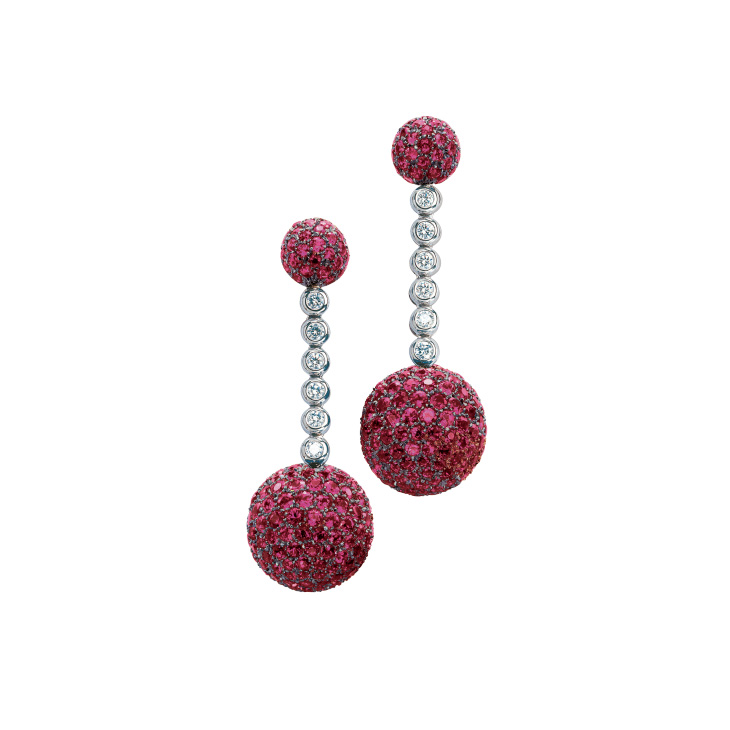 Серьги de Grisogono, коллекция Boule. Серьги из белого золота 750 пробы с белыми бриллиантами и рубинами.