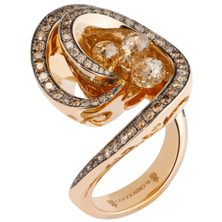 Кольцо de Grisogono, коллекция Chiocciolina. Кольцо из розового золота 750 пробы с коричневыми бриллиантами и коричневыми бриллиантами огранки «бриолет».