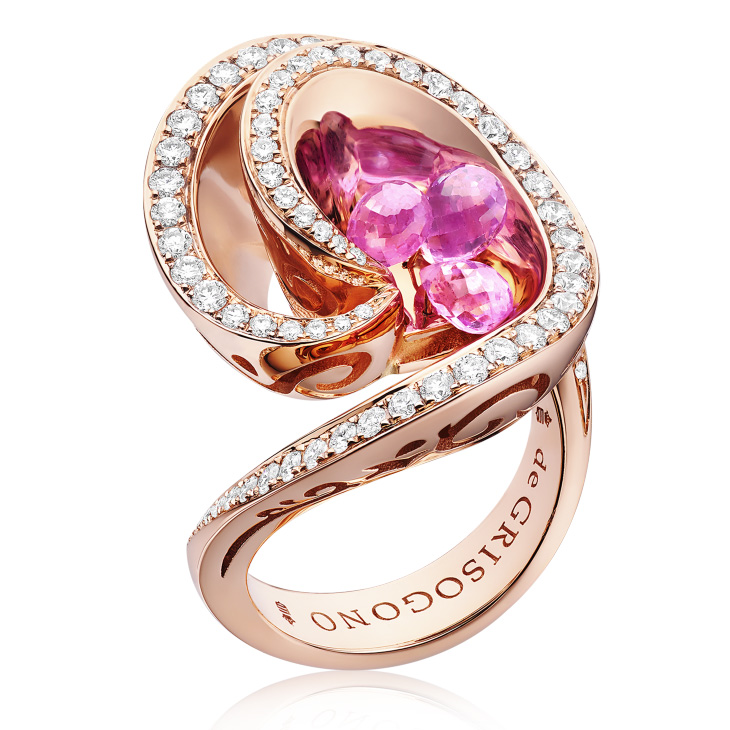 Кольцо de Grisogono, коллекция Chiocciolina. Кольцо из розового золота 750 пробы с белыми бриллиантами и розовыми сапфирами огранки «бриолет».