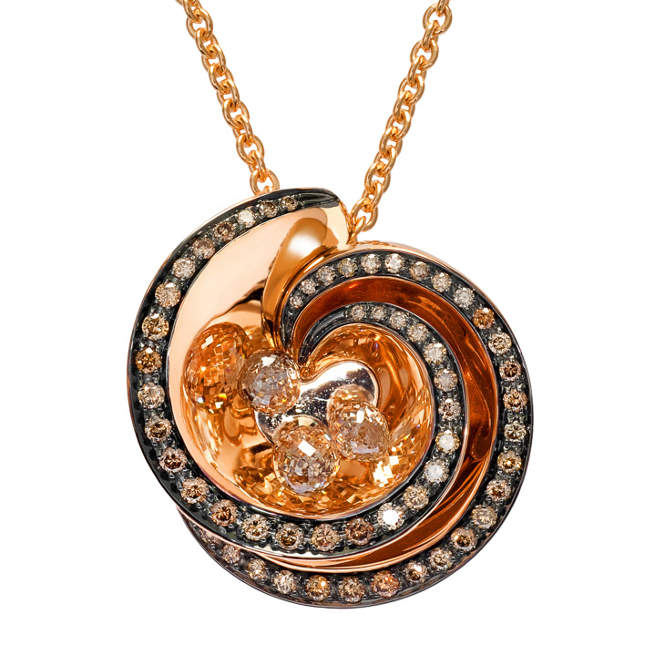Подвеска de Grisogono, коллекция Chiocciolina. Подвеска из розового золота 750 пробы с коричневыми бриллиантами и коричневыми бриллиантами огранки «бриолет». Подвеска на цепочке из розового золота.