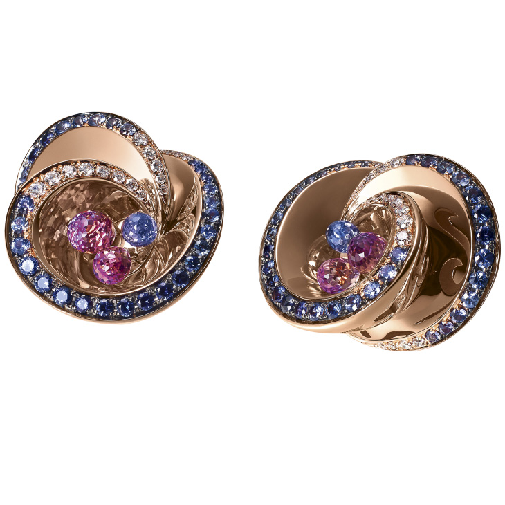 Серьги de Grisogono Chiocciolina, розовое золото, бриллианты, сапфиры, аметисты