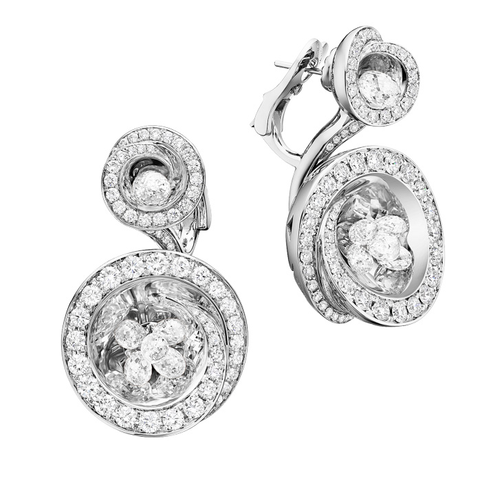 Серьги de Grisogono, коллекция Chiocciolina. Серьги из белого золота 750 пробы с белыми бриллиантами и белыми бриллиантами огранки «бриолет».