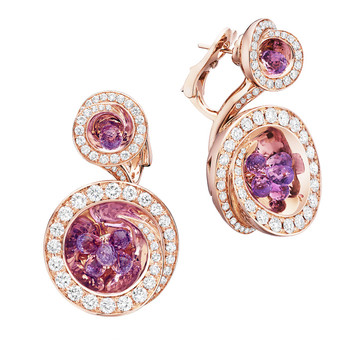 Описание Серьги de Grisogono Chiocciolina, розовое золото, бриллианты, аметисты